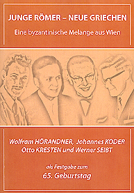 Beiträge von Absolventinnen und Absolventen des Instituts für Byzantinistik und Neogräzistik der Universität Wien, in Dankbarkeit gewidmet ihren Lehrern Wolfram Hörandner, Johannes Koder, Otto Kresten und Werner Seibt als Festgabe zum 65. Geburtstag